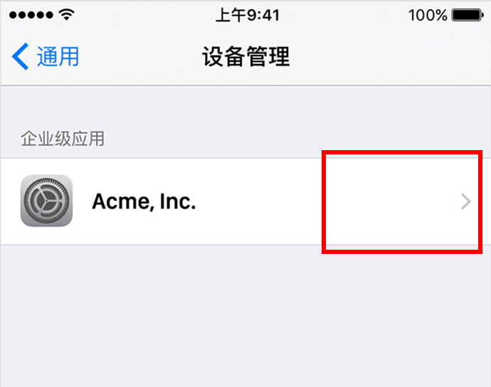 3、點擊「企業級應用」標題下的開發者描述文件名稱,來針對此開發者建立信任。